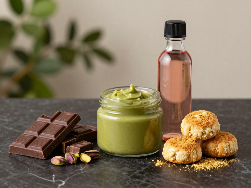 A Middle Eastern twist on the Italian classic — layers of espresso-soaked ladyfingers, pistachio mascarpone cream, and dark chocolate ganache dusted with cocoa and crushed pistachios.